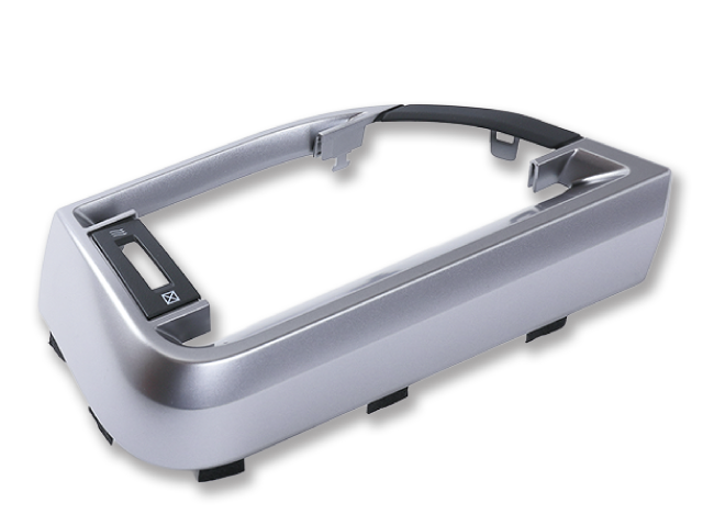 コンソールの外観を向上させるアクセントとなる部品。シルバーの塗装を施し、高級感のある仕上がりです。成形直後に塗装が可能なので、製造ロスを低減しています。