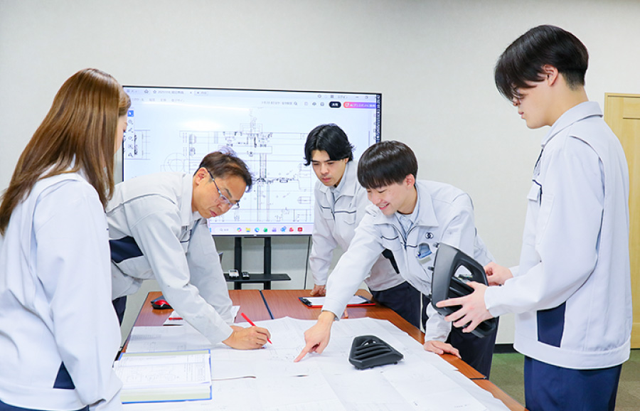 プラスチック成形をメインに、製品によっては塗装、組立(アッセンブリー)までを行います。社内で掲げた目標値の達成に向けて、工程内不良の割合を改善するため、安全・品質・生産性を追求。プラスチック成形の工程でダイレクトに活かせる「射出成形技能士」の資格取得支援にも取り組み、社員のモチベーション向上や人材育成にも力を入れています。